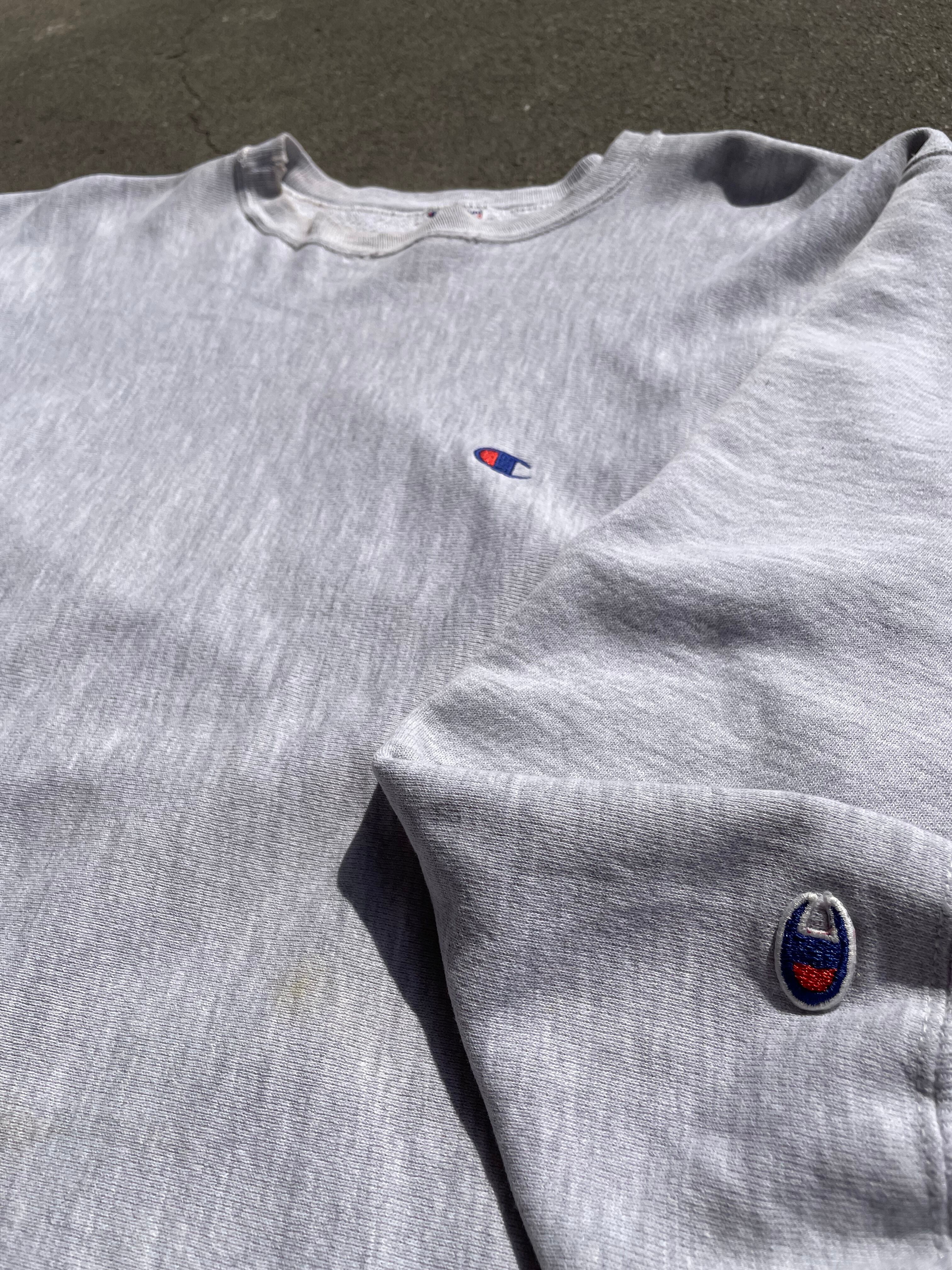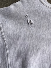 ・ヘビーウェイトなコットン素材を使用し、横縮みを防ぐために縦に生地を取った「リバースウィーブ製法」が特徴。